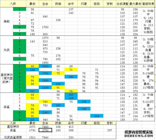 织梦好,好织梦如图,新版混搭效果不理想,武神一套高暴击高血量高命中完胜全套血鲨。PS:绿色穴,蓝色主属性,黄色副属性。 dedecms.com